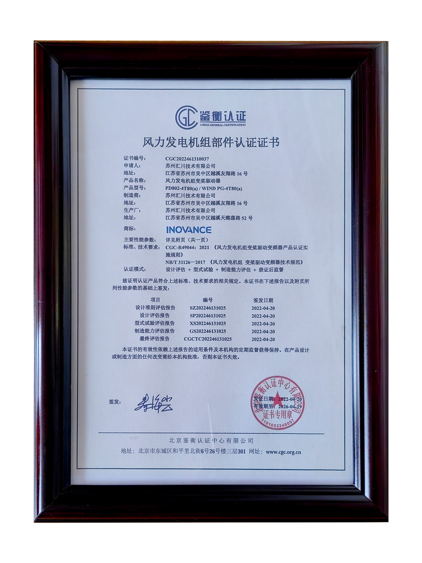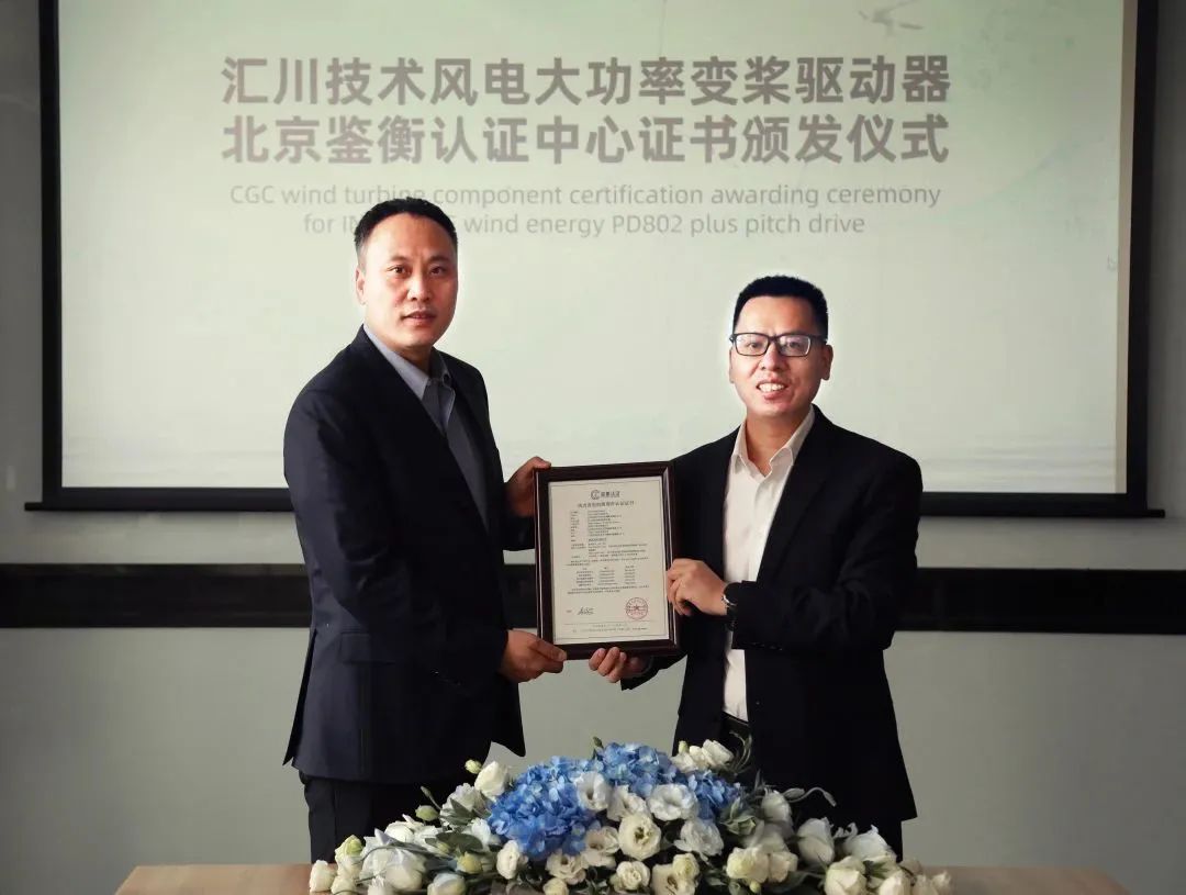 匯川技術榮獲“風力發電機組部件認證證書”