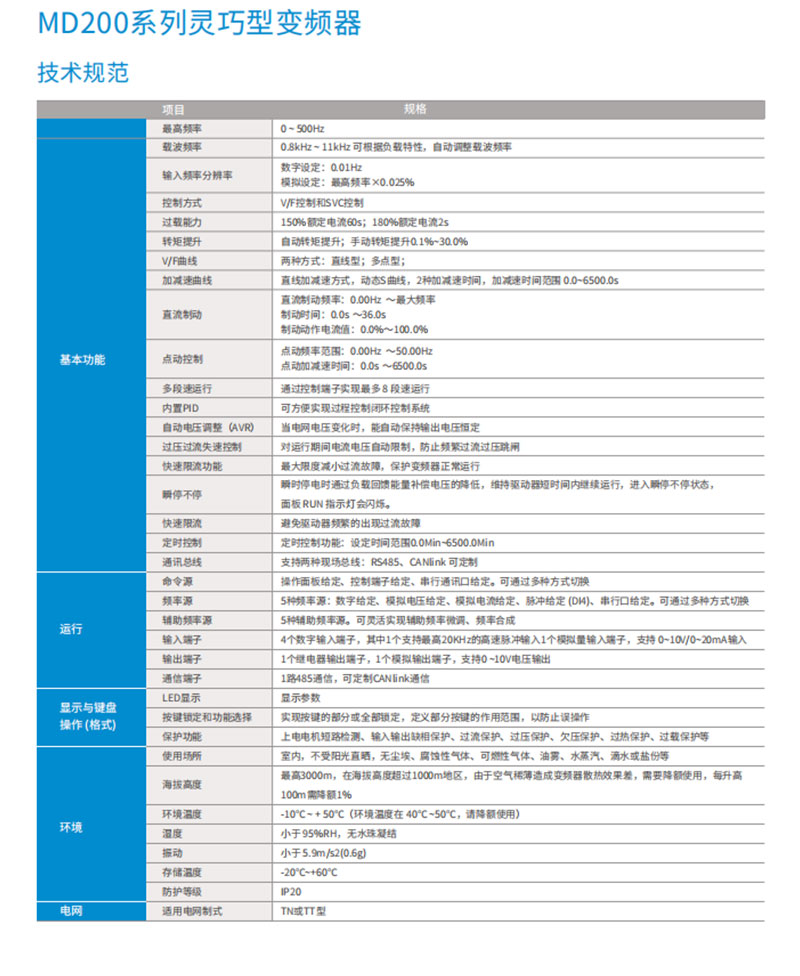 匯川變頻器MD200系列